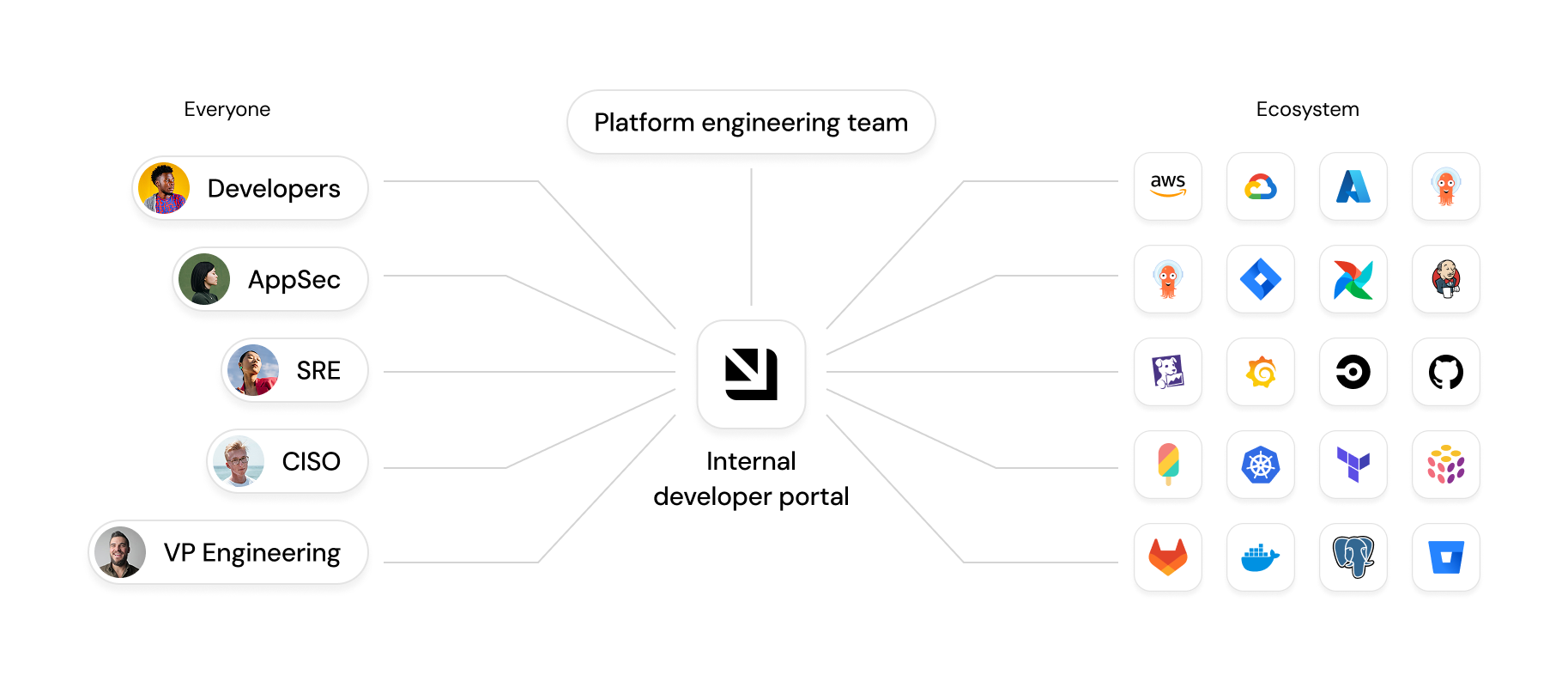 Unify data from your entire engineering ecosystem into a single source of truth. Connect your tools, services, and infrastructure to provide AI agents and developers with the organizational context they need.