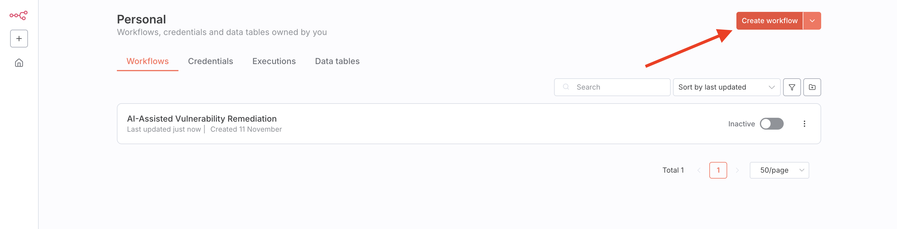 Create a new workflow in your n8n instance.
