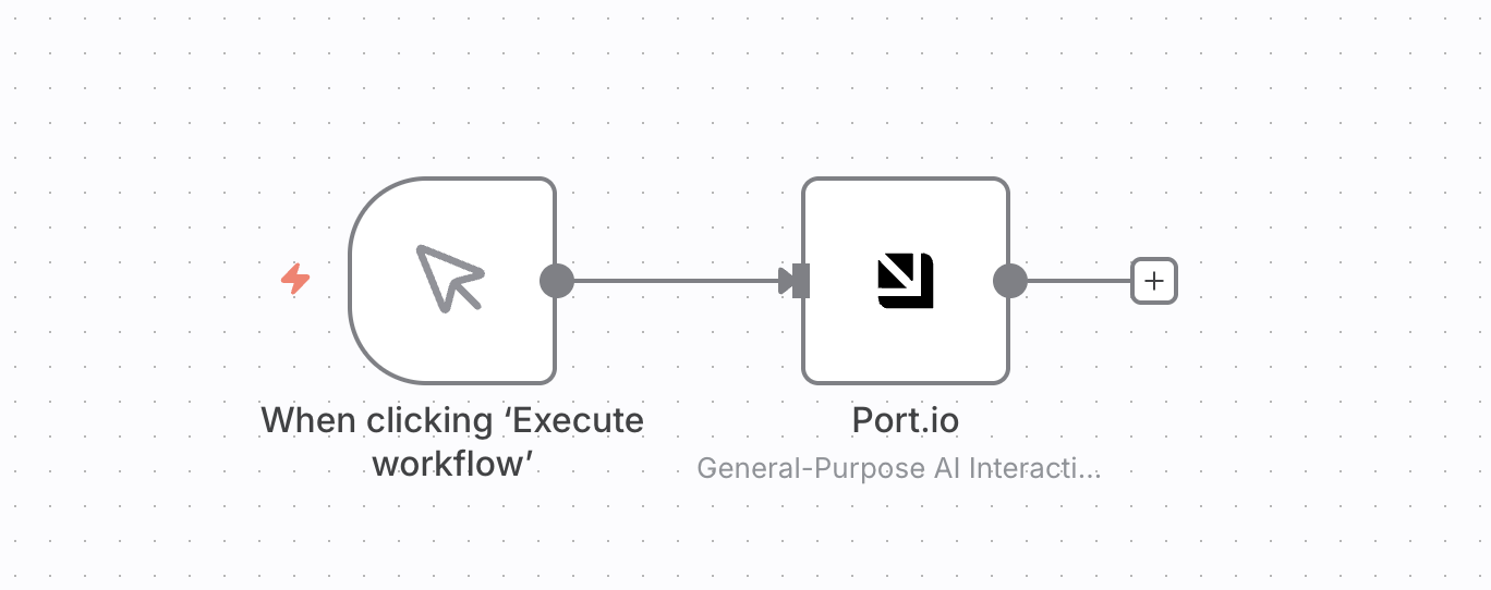 Connect the nodes — Drag from the + icon on the trigger node to the left side of the Port AI node to connect them.