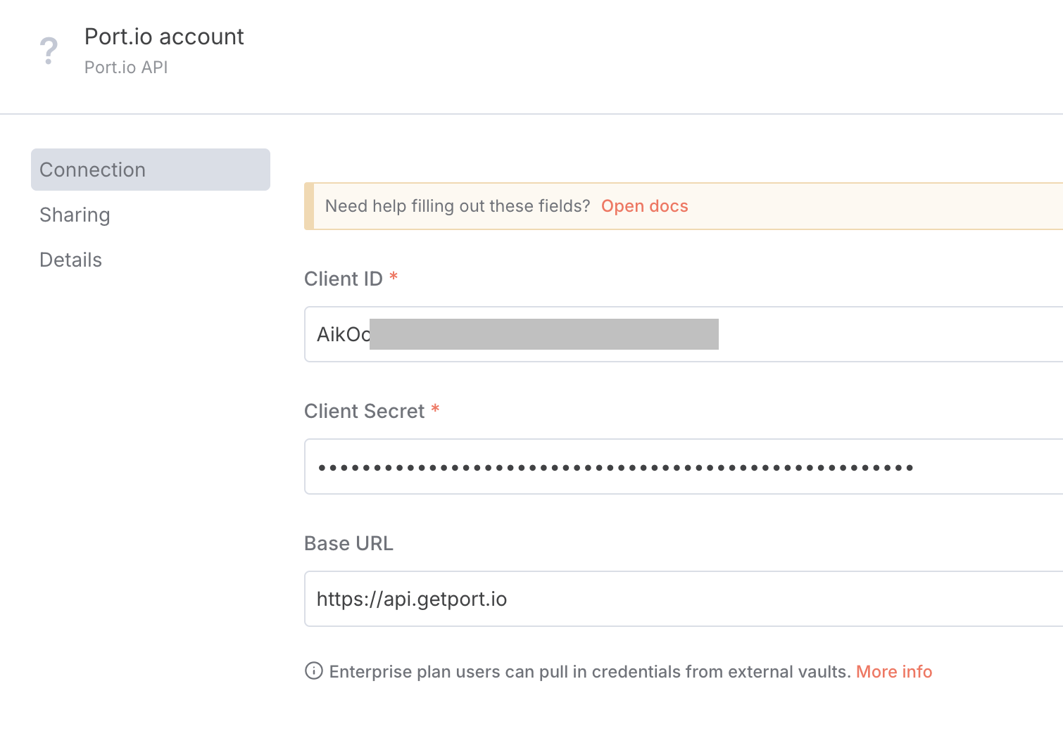- Client Secret — Your Port Client Secret