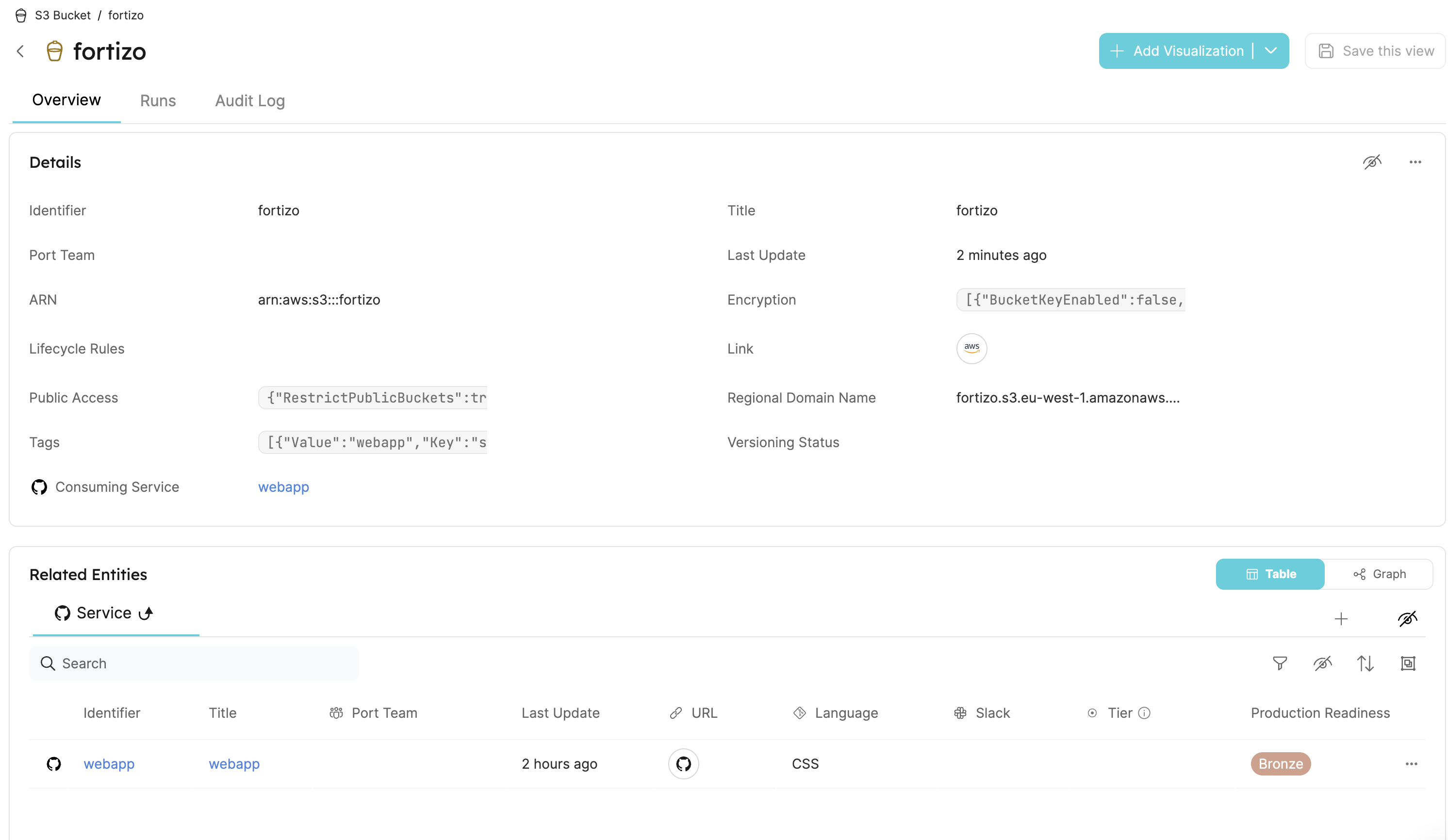 Now that Port is synced with your s3_bucket and service blueprints, let's map the two together.