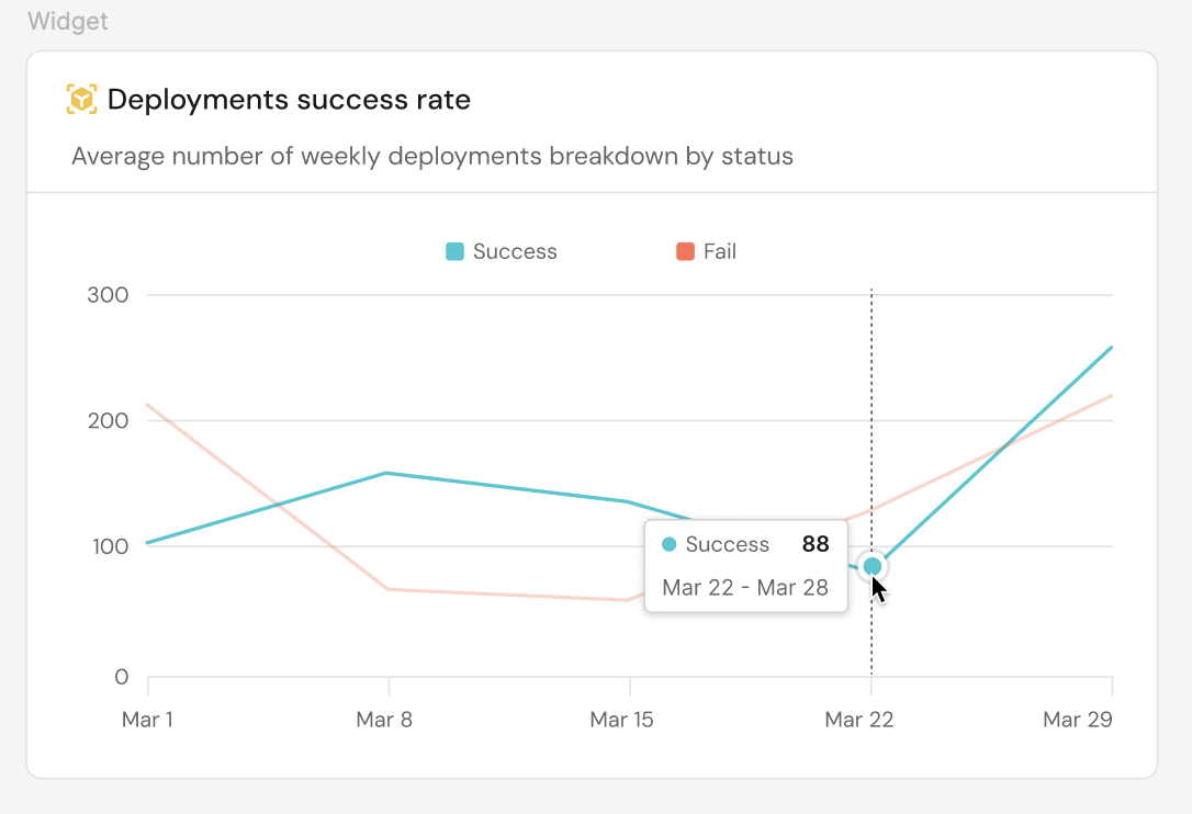 When a number chart is used alongside a line chart in a dashboard, for example a number chart showing average monthly deployment frequency and a line chart showing deployment frequency over time, you might notice that the average values differ, even if both charts reference the same metric (e.g. deployment frequency).