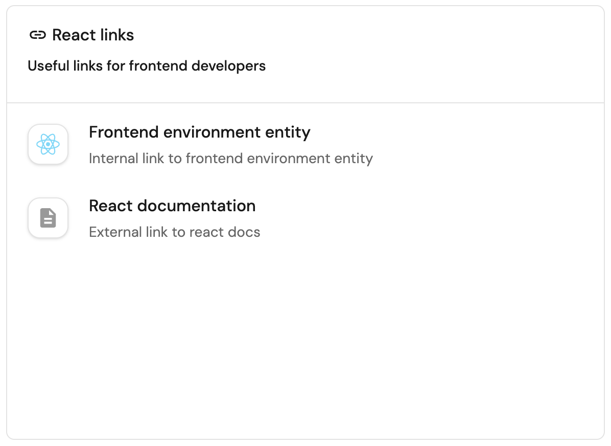 Internal links - links to internal pages in your portal, such as an entity page, a catalog page, an entity's audit log page, etc.
