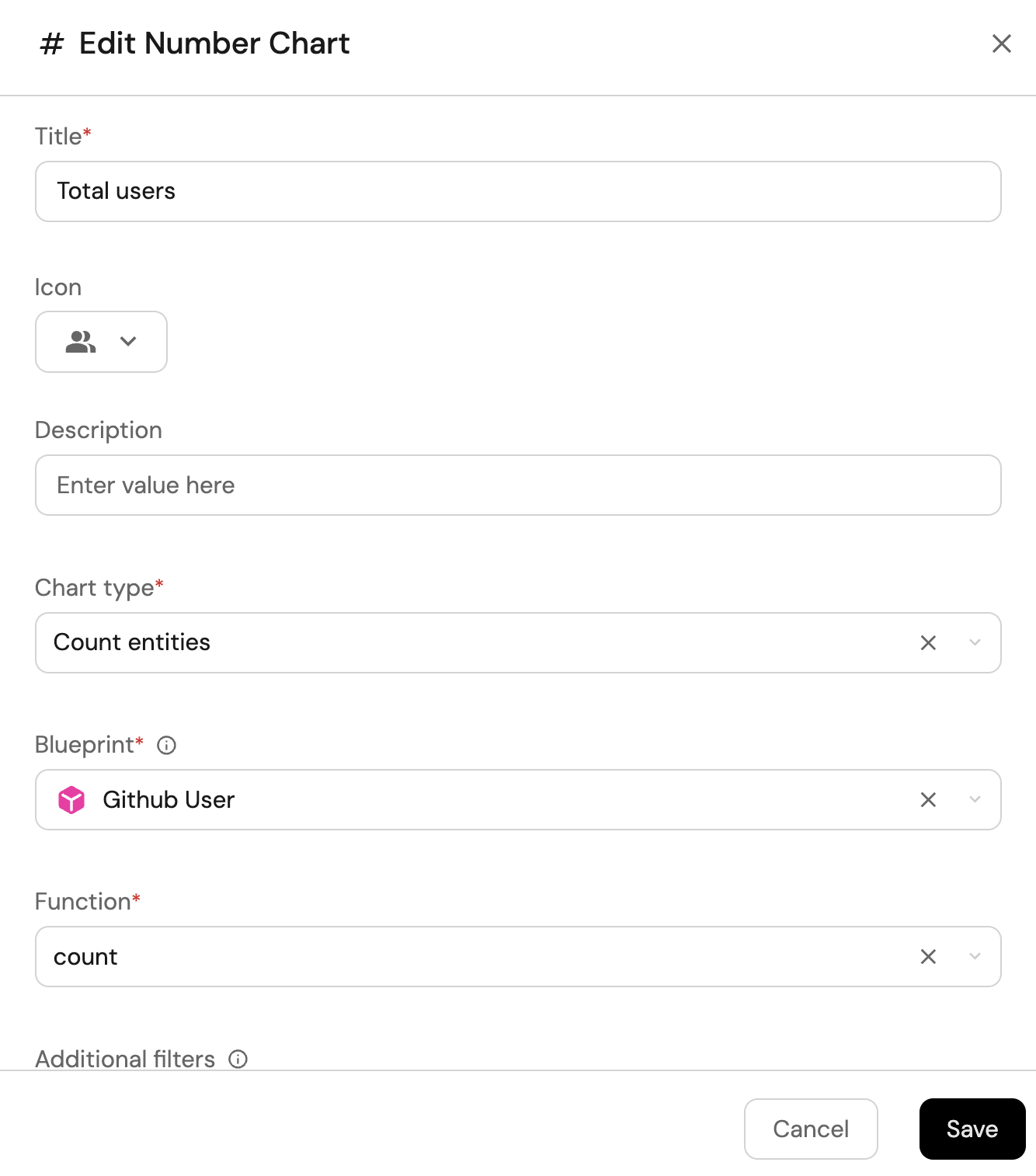 3. Select Count entities Chart type and choose GitHub User as the Blueprint.