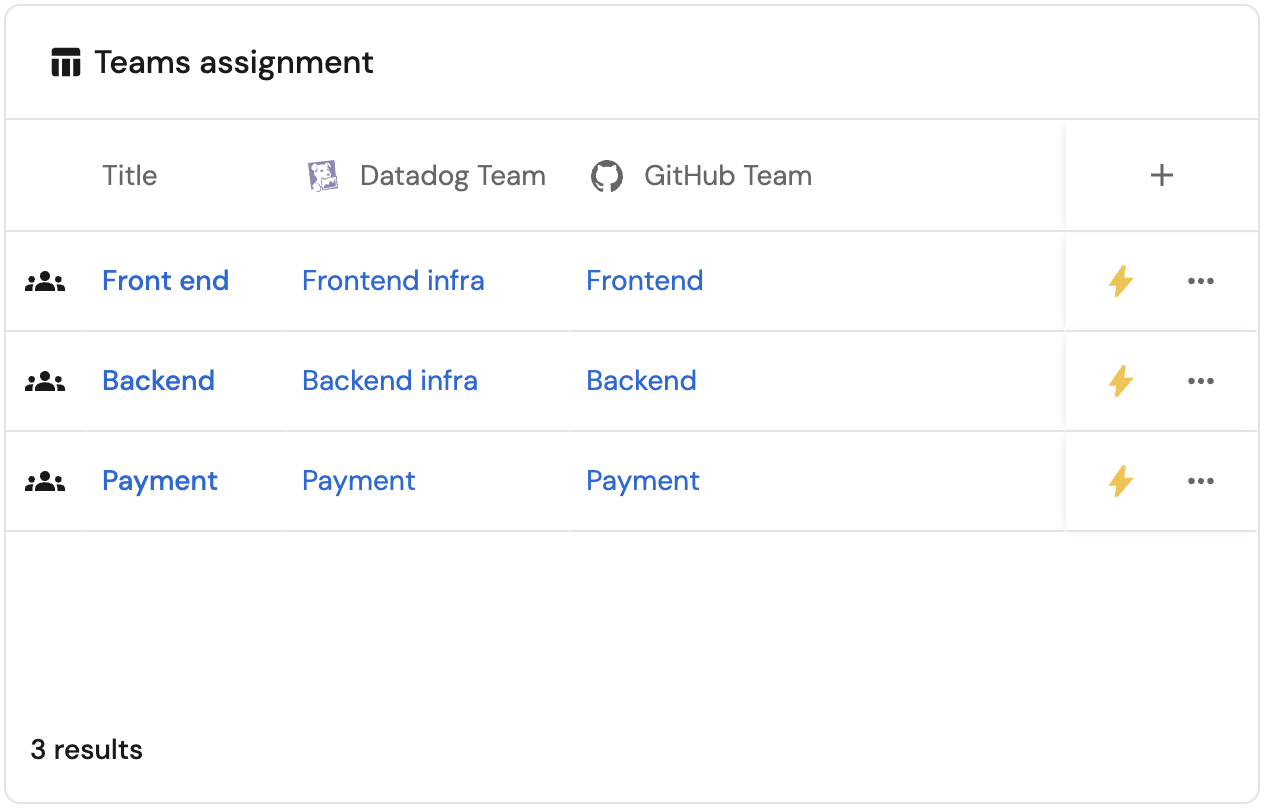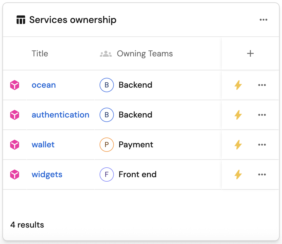 In some cases, ownership needs to be assigned to a specific user and not a team. For example, a PagerDuty incident may be owned by the current on-call user, or a GitHub Pull Request may be owned by the creator.
